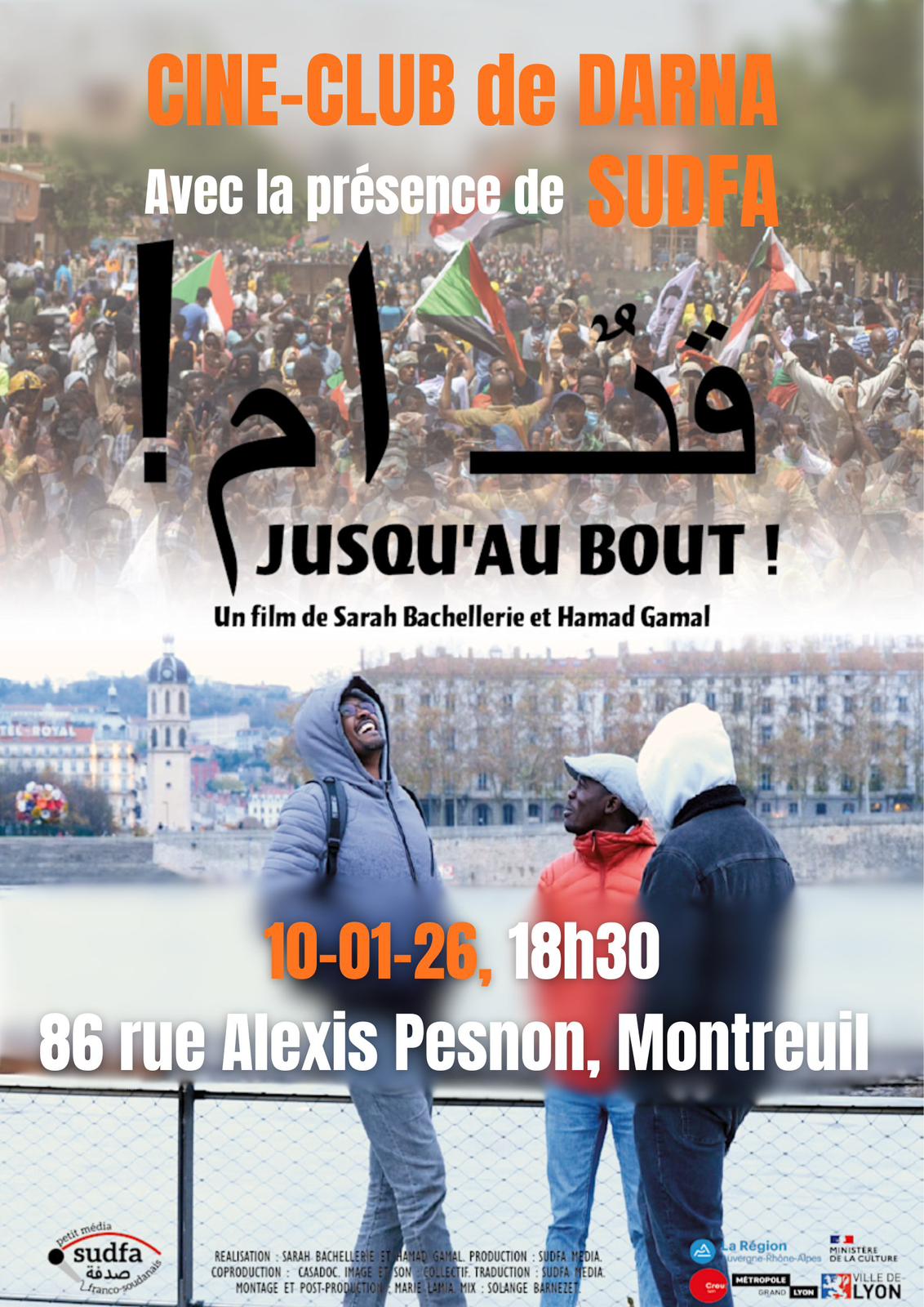 Le samedi 10 janvier, le ciné-club de Darna projette “قدام Jusqu’au-bout” avec la présence de membres de Sudfa, média franco-soudanais.
