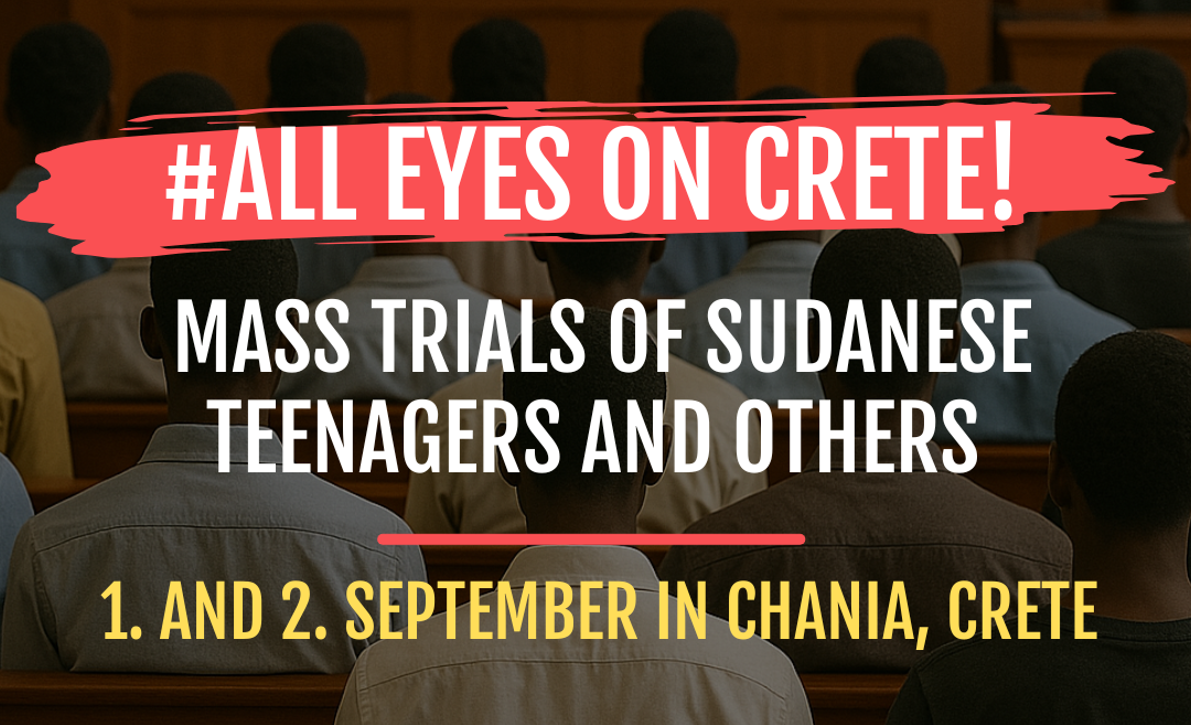 Aujourd’hui, des dizaines d’adolescents soudanais comparaissent devant le tribunal de Chania (Grèce), accusés d’avoir facilité la migration d’immigrant.es vers l’Europe. Ce motif est passible de la prison à vie dans la loi grecque. Le groupe de travail De.Criminalize, qui lutte en Europe pour la liberté de circulation et l’abolition de la loi répressive sur les passeurs, a été contactée par 16 d’entre eux : Garan David, 16 ans, Suleiman, 18 ans, Mohamed Babaker, 19 ans, Mohamed Mubarak, 17 ans, Dawud, 19 ans, Hani Zakaria, 18 ans, Bada Ruman, 19 ans, Ageen, 36 ans, Osain, 25 ans, Altonmarjan, 23 ans. L’association se mobilise pour créer une campagne de soutien et leur fournir de l’aide juridique. Une cagnotte citoyenne a permis de payer les frais d’avocats afin qu’ils puissent être défendus durant leur procès qui commence aujourd’hui.